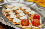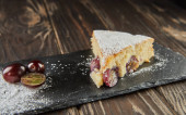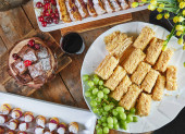 Słodki stół z wyborem ciast i wypieków z winogron i czerwonego wina