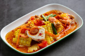 tajskie jedzenie; TOM YUM KUNG lub pikantna zupa krewetkowa