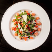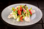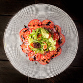 Zdjęcie "Sałatka z krabem i awokado na pomidorze carpaccio" może być wykorzystywane do celów osobistych i komercyjnych zgodnie z warunkami zakupionej licencji Royalty-free. Obraz jest dostępny do pobrania w jakości wysokiej rozdzielczości do 5760x3840.