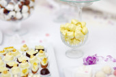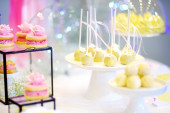 tort weselny wyskakuje w różowy i fioletowy