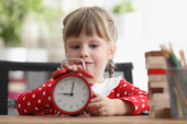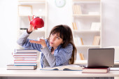Mała dziewczynka przygotowująca się do egzaminów w domu