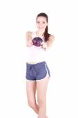 kibic piłki nożnej kobiet z gwizdkiem i piłki nożnej, studio