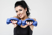 kobieta lekkoatletycznego ręce dojrzałe jabłko żółte, na czarnym tle