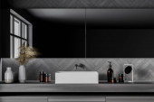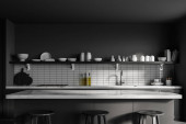 Zdjęcie "Wnętrze stylowej kuchni z białymi i szarymi ścianami, betonową podłogą i szarymi szafkami. 3d renderowanie" może być wykorzystywane do celów osobistych i komercyjnych zgodnie z warunkami zakupionej licencji Royalty-free. Obraz jest dostępny do pobrania w jakości wysokiej rozdzielczości do 5760x3840.