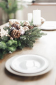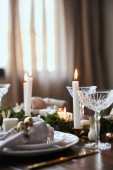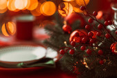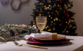 Zdjęcie "Dekorowany stół służył dla dwojga do świętowania Bożego Narodzenia i Nowego Roku, widok z boku. Zamknij się." może być wykorzystywane do celów osobistych i komercyjnych zgodnie z warunkami zakupionej licencji Royalty-free. Obraz jest dostępny do pobrania w jakości wysokiej rozdzielczości do 5760x3840.