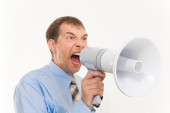 biznesmen z megafonem