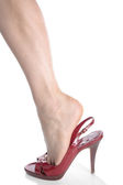 piękna kobieta nogi rajstopy obcasy różowe na białym tle