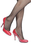 rajstopy nogi piękna kobieta z czerwonymi obcasami nad biały backgro
