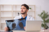 Zdjęcie "Młody lekarz radiolog pracujący w klinice" może być wykorzystywane do celów osobistych i komercyjnych zgodnie z warunkami zakupionej licencji Royalty-free. Obraz jest dostępny do pobrania w jakości wysokiej rozdzielczości do 5760x3840.