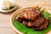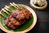 grillowana wieprzowina z białym lepkim ryżem - miejscowy styl Thai street food