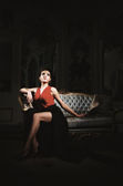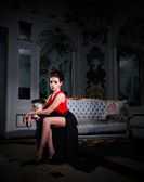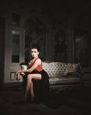 młoda kobieta siedzieć na kanapie w pokoju starożytnych