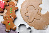 Zdjęcie "Płaska kompozycja układanki z domowymi piernikowymi ciasteczkami na czarnym stole, miejsce na tekst" może być wykorzystywane do celów osobistych i komercyjnych zgodnie z warunkami zakupionej licencji Royalty-free. Obraz jest dostępny do pobrania w jakości wysokiej rozdzielczości do 5760x3840.