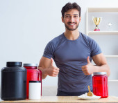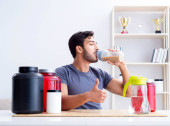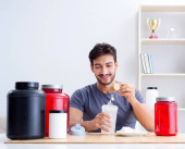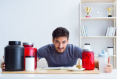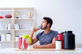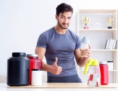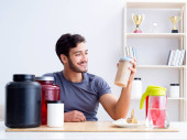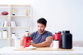 Sportowiec degustacja nowych suplementów białkowych dla lepszych mięśni