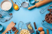 Kobieta przygotowująca piekarnię na stole, widok z góry