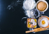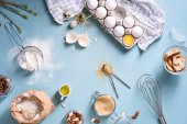 Kobieta przygotowująca piekarnię na stole, widok z góry