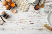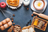 Kobieta przygotowująca piekarnię na stole, widok z góry