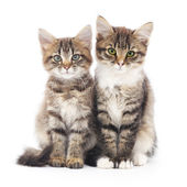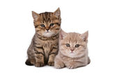 Kot europejski krótkowłosy i Brytyjski Stenografia kociak siedzi i wygląda