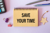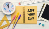 Zapisz swój czas - słowa napisane na drewnianych blokach w pobliżu materiałów biurowych