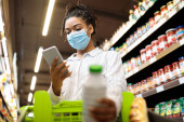 Zdjęcie "Woman in face mask using smartphone standing in store" może być wykorzystywane do celów osobistych i komercyjnych zgodnie z warunkami zakupionej licencji Royalty-free. Obraz jest dostępny do pobrania w jakości wysokiej rozdzielczości do 5760x3840.