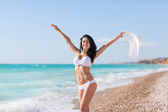kobieta w kapeluszu na plaży