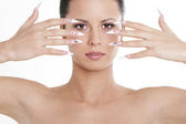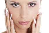 brunetka z naturalny makijaż i manicure