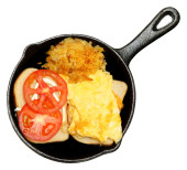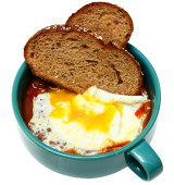 świeże piekarnik zapiekane jajka z kiełbasą i serem