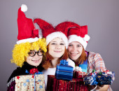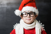 Zabawna dziewczyna w okularach z Boże Narodzenie prezenty.
