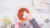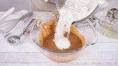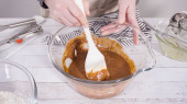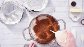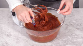 Leżeć płasko. Mieszanie składników do pieczenia czekoladowych babeczek malinowych.
