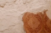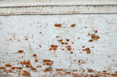 Stare okno łukowe dekoracyjne kwiaty na białym budynku.
