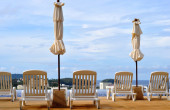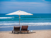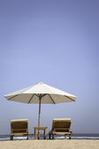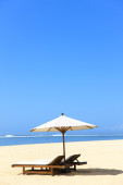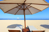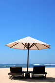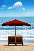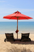 2 kanapami pod parasolem na piaszczyste wybrzeże Oceanu