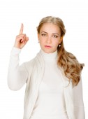 Zdjęcie "piękna kobieta pokazuje palcem w ostrzeżenie." może być wykorzystywane do celów osobistych i komercyjnych zgodnie z warunkami zakupionej licencji Royalty-free. Obraz jest dostępny do pobrania w jakości wysokiej rozdzielczości do 5760x3840.