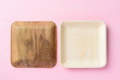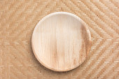 Tylna i przednia płyta betal liści palmowych (Biodegradowalny, Kompostowalny, Jednorazowy lub Ekologiczny talerz) na żółtym tle, Zrównoważona koncepcja