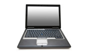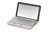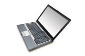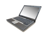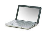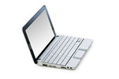 laptopa strzał z szerokokątny obiektyw na białym tle