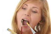 Zdjęcie "piękna młoda kobieta jedzenie pigułki ona łyżka." może być wykorzystywane do celów osobistych i komercyjnych zgodnie z warunkami zakupionej licencji Royalty-free. Obraz jest dostępny do pobrania w jakości wysokiej rozdzielczości do 5760x3840.