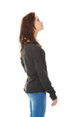 to patrząc na piękną kobietę dorywczo. widok z boku.