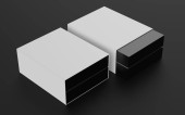 Abstrakcyjne tło projektu. Dwa pudełka leżą na ciemnym tle. 3d rendrowanie