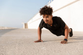 Dwóch młodych, atletycznych, amerykańskich mężczyzn ćwiczących na macie do ćwiczeń w pomieszczeniach