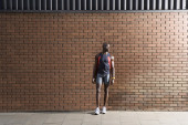 młody atletyczny Afroamerykanin człowiek trzyma skakankę podczas treningu w domu