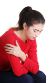 młoda kobieta piękną jest posiadanie ból ramienia.