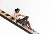 Zdjęcie "Dwóch młodych, przystojnych, afrykańskich mężczyzn siedzących na matach treningowych podczas treningu w pomieszczeniach" może być wykorzystywane do celów osobistych i komercyjnych zgodnie z warunkami zakupionej licencji Royalty-free. Obraz jest dostępny do pobrania w jakości wysokiej rozdzielczości do 5760x3840.