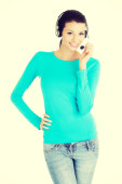 Zdjęcie "młoda kobieta dorywczo z słuchawki i mikrofon." może być wykorzystywane do celów osobistych i komercyjnych zgodnie z warunkami zakupionej licencji Royalty-free. Obraz jest dostępny do pobrania w jakości wysokiej rozdzielczości do 5760x3840.