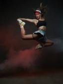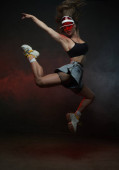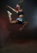 Zdjęcie "Skoki tancerka w krótkim ubraniu w ciemnym tle" może być wykorzystywane do celów osobistych i komercyjnych zgodnie z warunkami zakupionej licencji Royalty-free. Obraz jest dostępny do pobrania w jakości wysokiej rozdzielczości do 5760x3840.