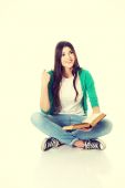 student kobieta siedzi i czytanie książek.