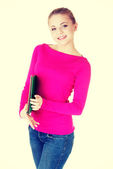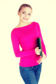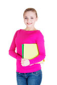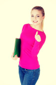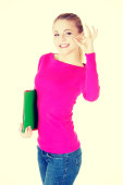 Młoda dama dorywczo studentów pokazujesz gestem ok.