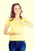 Młoda dama dorywczo studentów pokazujesz gestem ok.