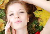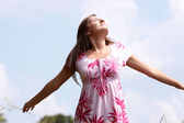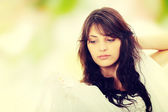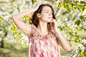 piękna młoda kobieta w górę za pomocą sprayu.