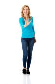 Zdjęcie "piękna kobieta dorywczo pokazano trzy palce." może być wykorzystywane do celów osobistych i komercyjnych zgodnie z warunkami zakupionej licencji Royalty-free. Obraz jest dostępny do pobrania w jakości wysokiej rozdzielczości do 5760x3840.