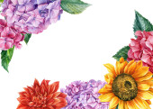 Zdjęcie "Pozdrowienia kartka, kompozycje kwiatowe, kwiaty dahlia, róża, clematis, hortensja, akwarela botaniczne ilustracja" może być wykorzystywane do celów osobistych i komercyjnych zgodnie z warunkami zakupionej licencji Royalty-free. Obraz jest dostępny do pobrania w jakości wysokiej rozdzielczości do 5760x3840.