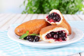 Świeże pieczone pasty z wiśni na tabliczce na stół szczegół