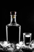 bir şişe votka ve siyah izole bardak